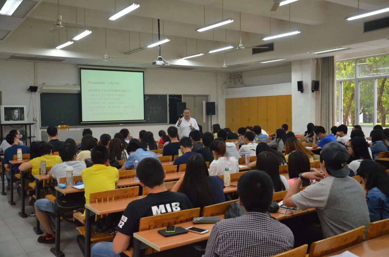 (本网讯)4月23日下午,来自广州凯路仕自行车的人力资源总监王琳在南校区F107教室,给MIB学子带来了一场关于商务职场人生的交流。王琳总监多年从事人力资源管理工作,曾就职于仕达咨询、广东太古可口可乐公司、安利(中国)等知名国内外企业,对人力资源方面颇有研究,现场座无虚席。