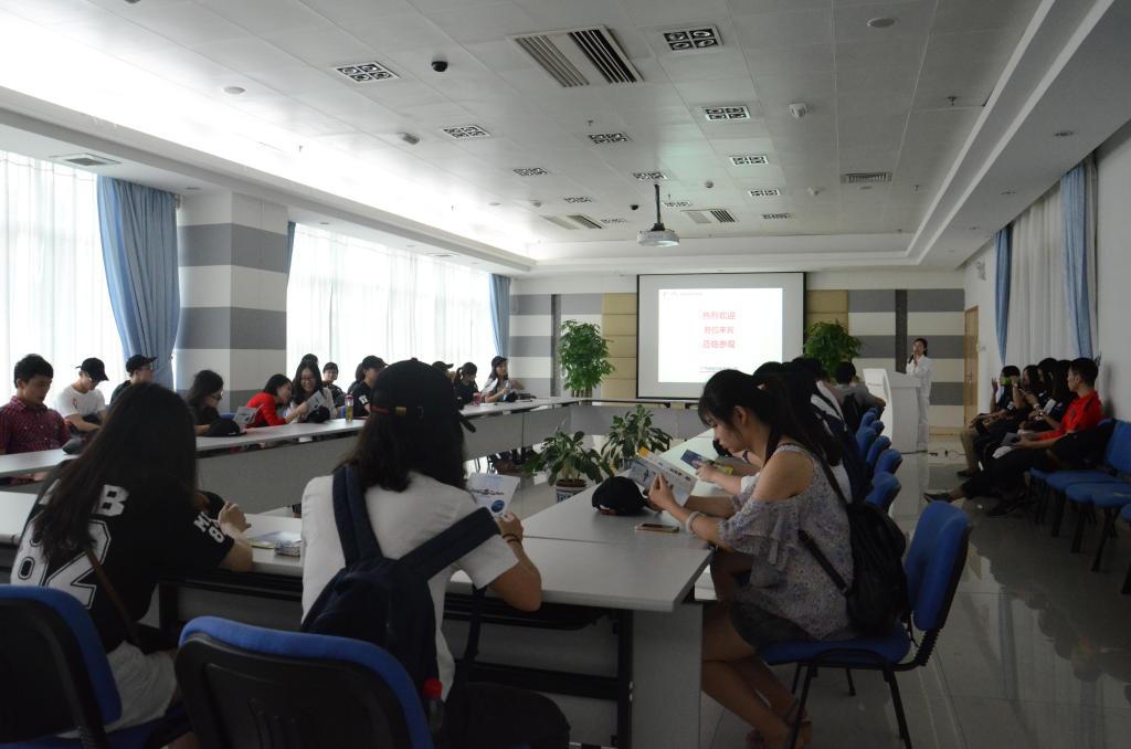参观工厂结束后,同学们跟随讲解员来到了会议室,观看了广汽本田的宣传展示,并与陪同的广汽本田公关部陆国政专员进行了以“广汽本田与国际商务”为主题的座谈会。