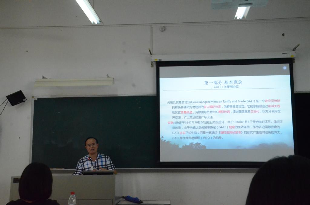 9月5号和6号分别在教学楼F栋212和412举行了自贸区的相关讲座。主讲人是经济贸易学院副院长肖奎喜教授。参加本次讲座的是2019级国际商务硕士新生57余人。肖教授在讲座中介绍了中国从“复关”到“入世”的历史,在基础的概念上又结合了现实的五大自贸区案例进行精彩的讲解。